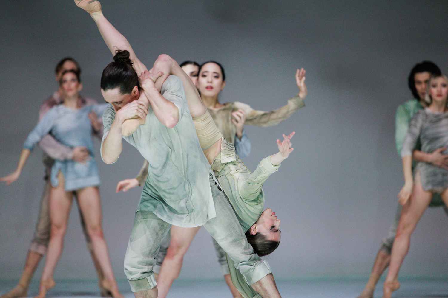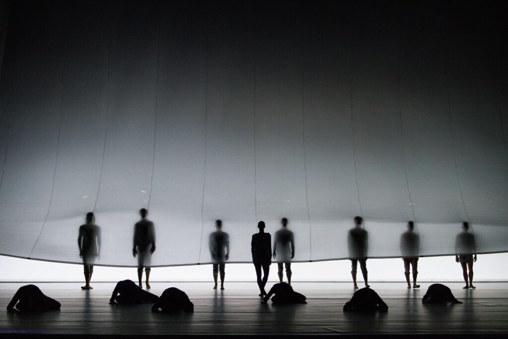 Im ersten Teil des Abends, Fall, lässt sich Cherkaoui von der Symbolik des Herbstes und der ewigen Auseinandersetzung des Körpers mit der Schwerkraft inspirieren. Die meditative Musik von Arvo Pärt begleitet den Zyklus des Fallens und Wiederaufstehens und schafft so eine fast tranceartige Atmosphäre. Getragen von der Interaktion der Tänzer:innen entfaltet sich ein visuelles Spiel, das an die Natur erinnert. Die Produktion stammt ursprünglich vom Opera Ballet Vlaanderen und feierte 2015 in Gent ihre Uraufführung.