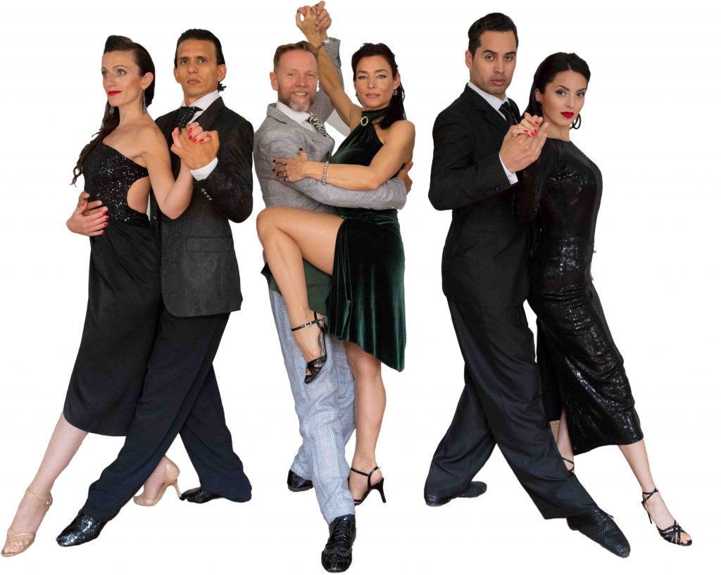 Chiara Greco und Martin Acostasind professionelle Tangotänzer, die seit fünf Jahren auf internationalen Tango Shows auftreten. In Wien betreiben sie das „Tango Atelier“. Rosa Ginger Berg ist Tangotänzerin und Choreografin, Mathias KahlerTänzer und Schauspieler. Am Abend treffen sie erstmals auf der Bühne zusammen. Und schließlich Iara Duarte und Jesus Paez, die argentinischen Nationalmeister 2017 in der Kategorie „Tango de Pista“.